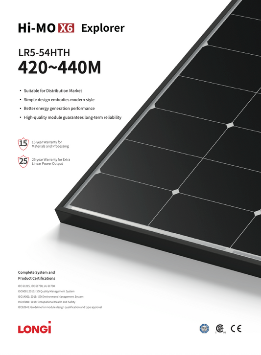 Panou Fotovoltaic LONGI HI-MO X6 Explorer LR5-54HTH-440M N-Type black frame 440W