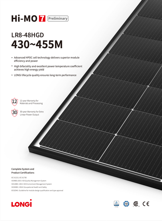 Panou Fotovoltaic LONGI Bifacial HI-MO 7 Preliminary LR8-48HGD-445M N-Type black frame 445W