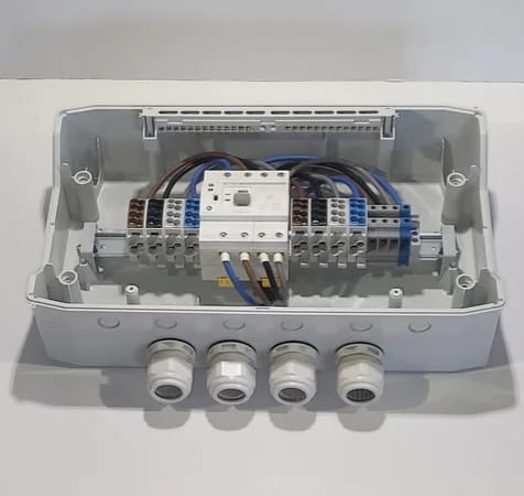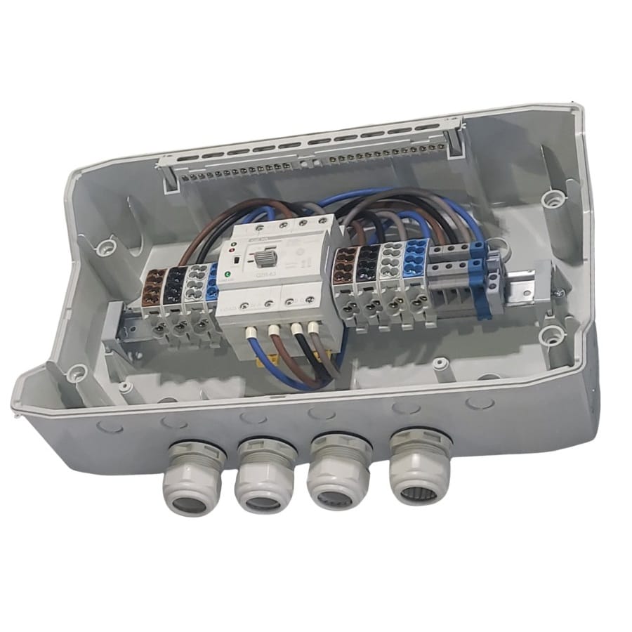 Montat într-o carcasă IP66, tabloul poate fi instalat atât în interior, cât și în exterior, fiind protejat împotriva apei și prafului.